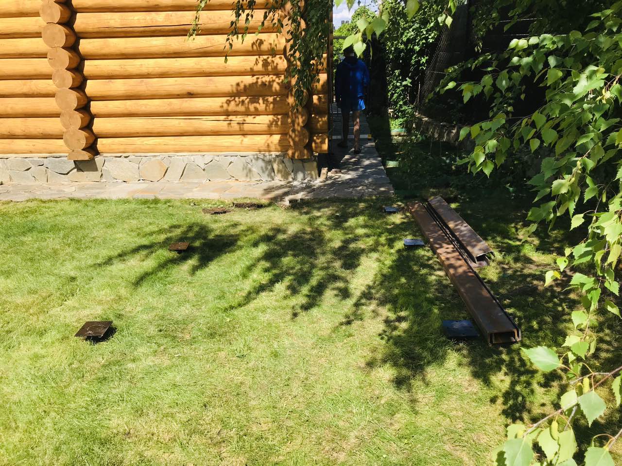 Поэтапная установка свайного фундамента под теплицу с обвязкой свай швеллером в д. Жебреи.