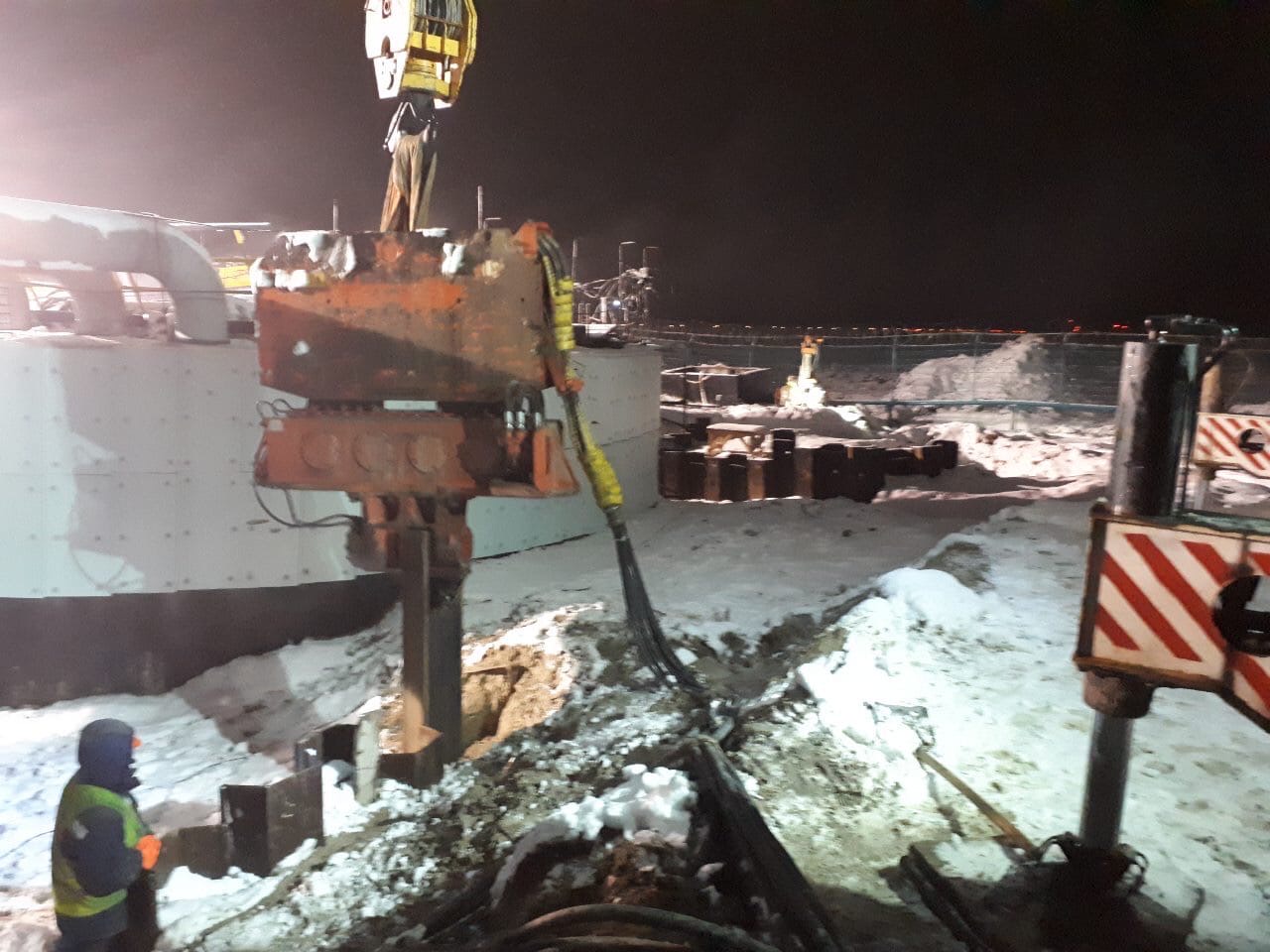 Тобольск. Продолжаются работы по укреплению котлованов под КНС. Демонтаж-монтаж шпунта ларсена GU27n