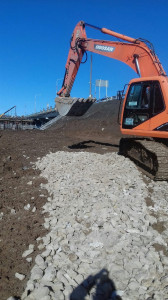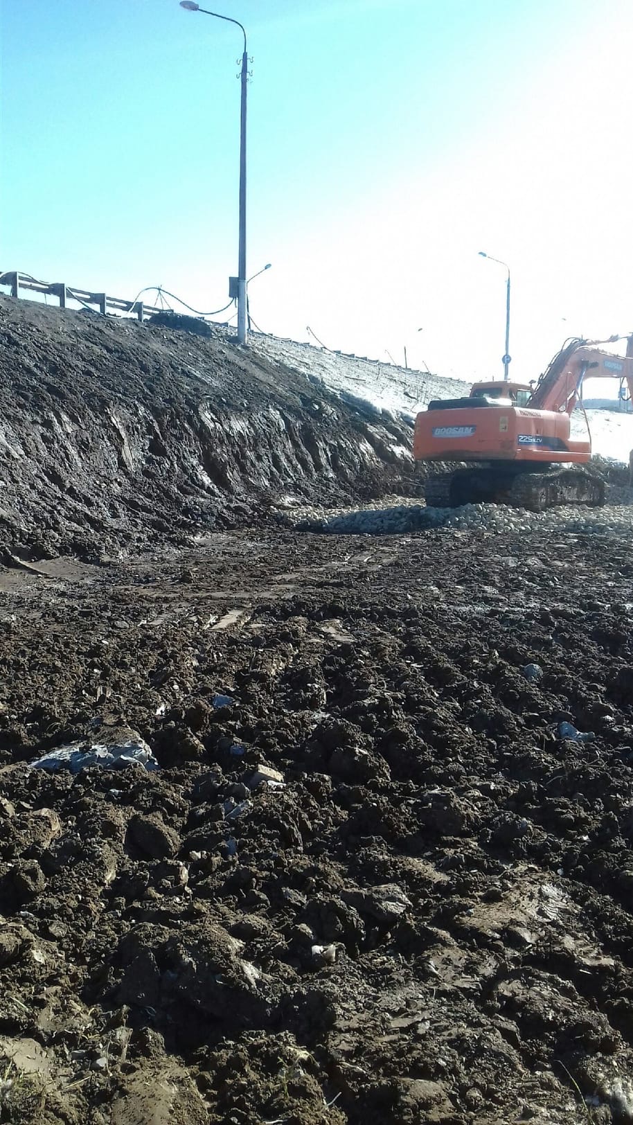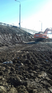 Находка. Чусовской мост. Строительство дорожной развязки в Пальниках. Подготовка площадки для устройства шпунтовой подпорной стенки.